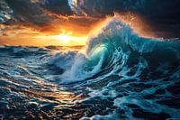 Pittoreske golf in een woelige zee met fantastische lichtstemming