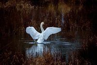 Zwaan bij het ochtendbad van Roland Brack