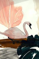 Dit kunstwerk heeft een elegant en minimalistisch ontwerp dat perfect zou passen in een modern boho of Scandinavisch interieur. We zien een roze zwaan in een abstracte achtergrond. Het schilderij voelt nostalgisch aan maar heeft toch ook een moderne schwung.