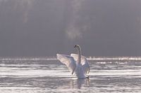 Prachtig om te zien hoe de zwaan, nadat hij zichzelf uitgebreid heeft gepoetst, zich uit het water duwt om zijn vleugels droog te wapperen. In 1 van de mooie kreekjes in de Brabantse Biesbosch vanuit onze JBN sloep