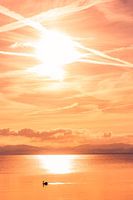 Zwaan in het Bodenmeer bij zonsondergang in het zonlicht