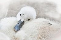 Baby zwaantje van enkele dagen oud. Vader en moeder zwaan kwamen langs zwemmen en lieten hun 9 jongen even rusten op mijn steiger. Een mooi moment om wat foto's te maken.