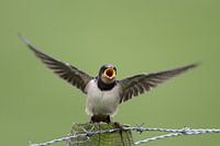 Jonge zwaluw schreeuwt om eten