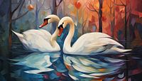 Zwanen abstract panorama van TheXclusive Art