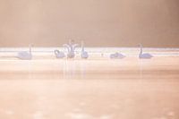 Tijdens een vaartocht met onze JBN Fotosoep op een mooie mistige ochtend kon ik deze zwanen fotograferen. Door het vroege ochtendlicht ontstaan de mooie pasteltinten.