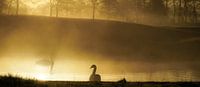 Landschap met zwanen, mist en prachtige kleuren en licht.