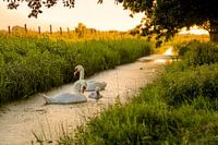 Zwanenfamilie op Marken in avondlicht van Marco Rutten