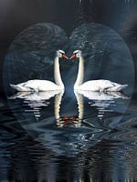 Zwaan, zwanen, wit, zwanenpaar, digitalart Digital Art, collage, zwart-wit, zwart-wit, dieren, watervogels, hart, water, waterreflectie, reflectie, liefde, dierenliefde, zwanenmeer. Glamour, schoonheid, paar, uiterwaard, vloedwater, meer, magisch, mystiek, betoverend, fabelachtig, wit, zwart-wit blauw, hartvormig, kindermotief,…