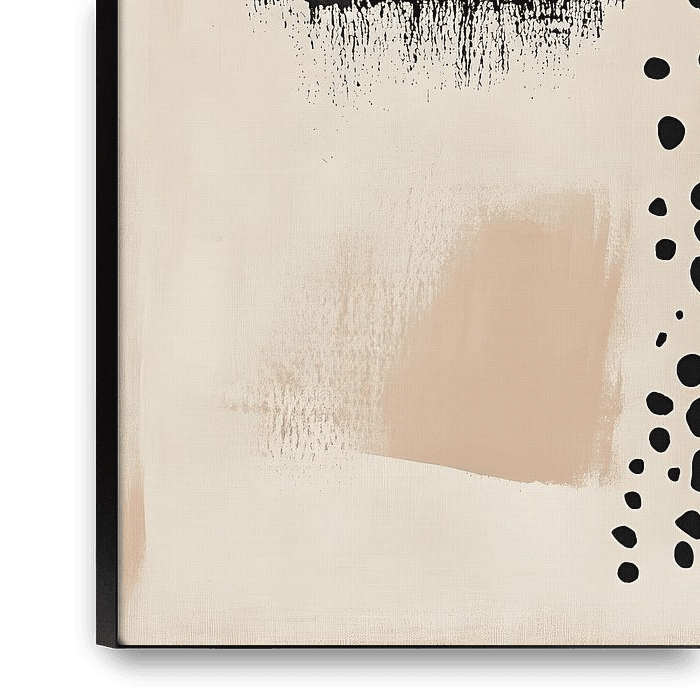 In dit kunstwerk wordt een abstracte expressie tot leven gebracht in een mix van neutrale kleuren en tinten, die prachtig samensmelten en de serene sfeer oproepen.