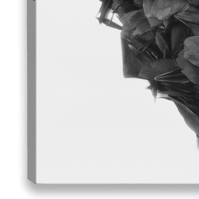 Een zwart hart van bloemblaadjes van een pioenroos. Indrukwekkende zwart-witfotografie
