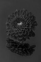 "Zwart - Wit: Een Chrysant in zwart grijs wit tinten" is een macrofoto van een kleine Chrysant op een spiegelend oppervlak. Deze foto is in zwart - wit en heeft vooral donkergrijze tinten.