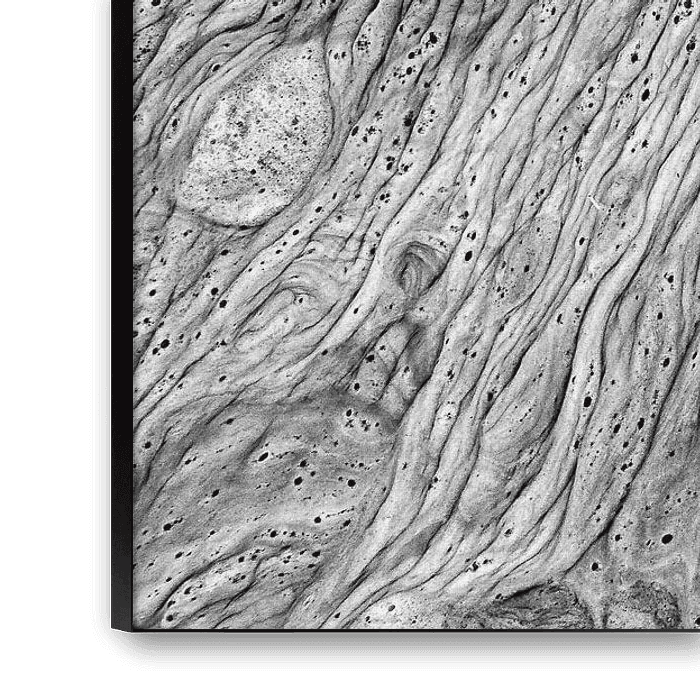 Wanneer ik dit werk in zwart-wit vastleg, voel ik hoe de essentie van vorm en textuur naar voren treedt. Zonder de afleiding van kleur blijft enkel de pure dialoog tussen licht en schaduw over. Het zijn die contrasten die de kracht van dit beeld bepalen: de vloeiende lijnen, de grillige structuren en de subtiele nuances die anders misschien onopgemerkt zouden blijven.