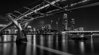 Zwart-Wit: in de avond als de Millenium Bridge verlicht is, vormt het een mooi frame om een deel van de Londense skyline.