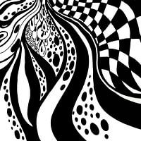 Een abstract Zentangle doek in zwart-wit met een prachtig patroon.