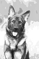 Een Duitse herder in zwart wit getekend effect. Deze foto heeft een heel andere look gekregen.