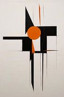 Dit kunstwerk brengt de essentie van minimalisme samen met een krachtige visuele impact. De dominante zwarte vormen contrasteren sterk met de helderwitte achtergrond, terwijl de oranje cirkel een opvallend middelpunt vormt dat het oog trekt en de aandacht vasthoudt. Deze compositie, met zijn strakke lijnen en blokken van kleur, zou een sterk, modern statement geven in elk hedendaags interieur. De subtiele nuances en overlappende elementen voegen diepte en interesse toe aan het stuk, waardoor de kijker blijft ontdekken en interpreteren. Ideaal voor zowel de kenner als de nieuwe kunstliefhebber, is het een gesprek starter die stijl en verfijning in elke ruimte zal brengen.