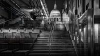Zwart-Wit: trappen vanaf de oever van de Theems naar St. Paul's Kathedraal.
