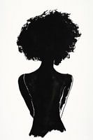 De graphic toont een gestileerd silhouet van een vrouw met vol, krullend haar dat de kracht en elegantie van Afro-Amerikaanse schoonheid belichaamt. Het gereduceerde kleurenpalet in zwart en wit versterkt de expressiviteit van de vorm en vestigt de aandacht op de harmonieuze lijnen en indrukwekkende textuur van het haar. Een sterk symbool van individualiteit en trots.
