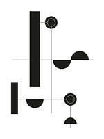 Moderne, abstracte, geometrische poster in stijlvol zwart en wit. De geometrische vormen, bestaande uit vierkanten, cirkels en halve cirkels, worden verbonden met elkaar d.m.v. lijnen.