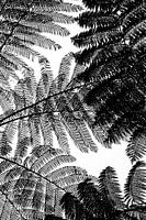 Zwart wit natuurfoto van een boomvaren. Simplistische abstracte foto met sterk contrast. Varens takken in Maleisie.