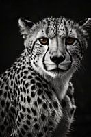 Deze prachtige zwart-wit foto van een cheeta toont de majestueuze schoonheid van het dier in een minimalistische, moderne stijl. Het intense contrast tussen de vlekken en de achtergrond creëert een dramatisch effect dat direct de aandacht trekt. Dit kunstwerk zou perfect passen in een moderne woonkamer, slaapkamer of kantoor, waar het een sterk en elegant statement kan maken. De cheeta kijkt recht in de camera, wat een gevoel van diepte en connectie met het dier geeft. Voor liefhebbers van dierenfotografie en zwart-wit kunst is dit een opvallend en tijdloos stuk dat een ruimte verfijning en kracht geeft.