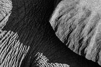 Een zwart-wit detail foto van een woestijnolifant in Namibië.