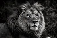 Zwart-wit foto van krachtige leeuw van Art & Soul Creations