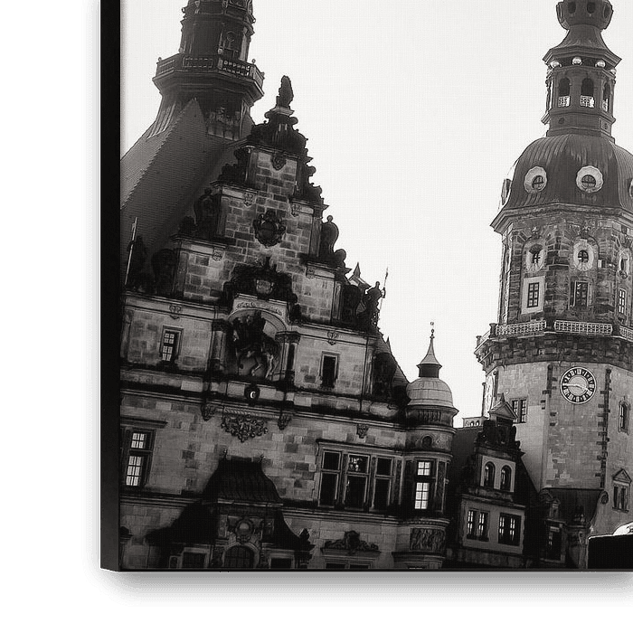 Een zwart-witte impressie van het Schlossplatz van Dresden.