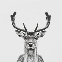Dit zwart-wit fotografische kunstwerk toont de majestueuze gratie van een hert in adembenemende helderheid. De minimalistische compositie benadrukt de fijne details van het gewei en de expressieve ogen, wat een krachtige maar serene uitstraling creëert. Perfect voor natuurliefhebbers die hun woon- of kantoorruimte willen verfraaien met een elegante en tijdloze decoratie. Deze foto vangt de essentie van het wild en de schoonheid van de natuur en inspireert tot een diepe band met wilde dieren.