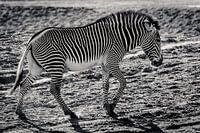 In de brandende zon en hitte zag ik deze zebra op de savanne rustig voorbij sjokken. Het zwart-wit van de zebra bracht mij op het idee om deze foto ook in het zwart-wit te maken. Zwart-wit in zwart-wit dus.