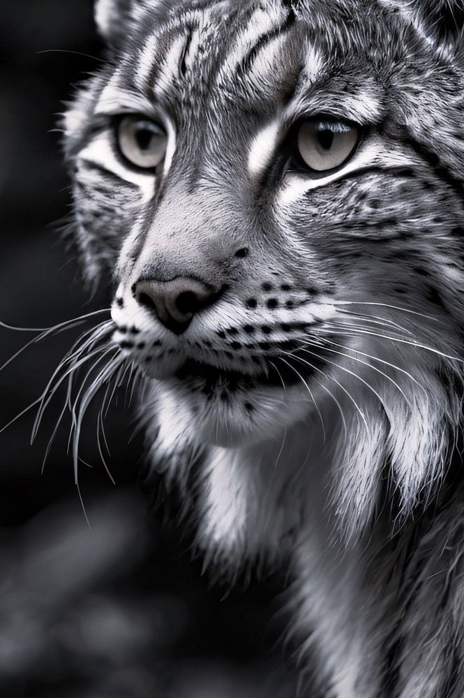 Dit prachtige zwart-wit ontwerp toont een indrukwekkend portret van een lynx, waarbij de details van de vacht en het scherpe, alerte gezicht van de lynx centraal staan. De donkere achtergrond zorgt ervoor dat de focus volledig op het dier ligt, wat een dramatisch contrast creëert en de schoonheid en kracht van dit majestueuze roofdier benadrukt. Dit ontwerp is perfect voor liefhebbers van dieren en natuur, en voegt een rustige maar krachtige sfeer toe aan elke ruimte. Door de neutrale tinten past het in diverse interieurstijlen, van modern tot klassiek, en kan het een blikvanger zijn in elke kamer, zoals een slaapkamer of kantoor.