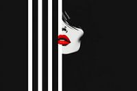 Een spel tussen licht en schaduw dat de mysterieuze allure van een vrouw in glinsterend rood vastlegt. De contrasterende grijze balken benadrukken haar lippen en geven het werk een moderne elegantie. Ideaal voor de slaapkamer of woonkamer, waar het een vleugje stijl en passie toevoegt.