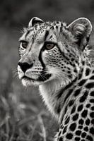 Dit indrukwekkende ontwerp toont een prachtig zwart-wit portret van een cheetah. De focus op de ogen en de gedetailleerde vacht geven dit kunstwerk een realistische en bijna tastbare kwaliteit. De kracht en schoonheid van de cheetah zijn vastgelegd in elk detail, van de gespannen spieren tot de subtiele lichtreflecties op de vacht. Dit ontwerp zou perfect passen in een moderne omgeving, waar het de aandacht trekt en een gevoel van sereniteit en bewondering voor de natuur oproept. Een uitstekende keuze voor dierenliefhebbers of iedereen die hun interieur wil verrijken met een sterk, stil en toch krachtig visueel statement.