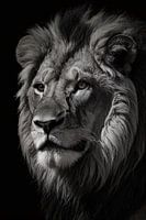 Over ‘Zwart-wit portret van een majestueuze leeuw’ van Art & Soul Creations