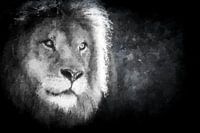 Zwart-wit portret van een mannetjes leeuw (mixed media) van Art by Jeronimo