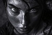 Dit krachtige ontwerp trekt je direct naar de intensiteit van de ogen. Het portret van een vrouw in zwart-wit belicht haar gelaatstrekken met een bijna surrealistische precisie. De combinatie van scherpte en contrast creëert een beeld dat zowel realistisch als emotioneel geladen is. De textuur van de huid, de glinstering van de ogen en de subtiele details in het haar maken dit ontwerp niet alleen een kunstwerk, maar een statement. Perfect voor een modern interieur, biedt dit portret een diepgaande sfeer die zowel kracht als kwetsbaarheid uitstraalt.