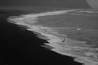 Black and white view of the beach in Dyrholaey, Iceland. The black sand is a great contrast to the white foam of the waves of the wild Atlantic…