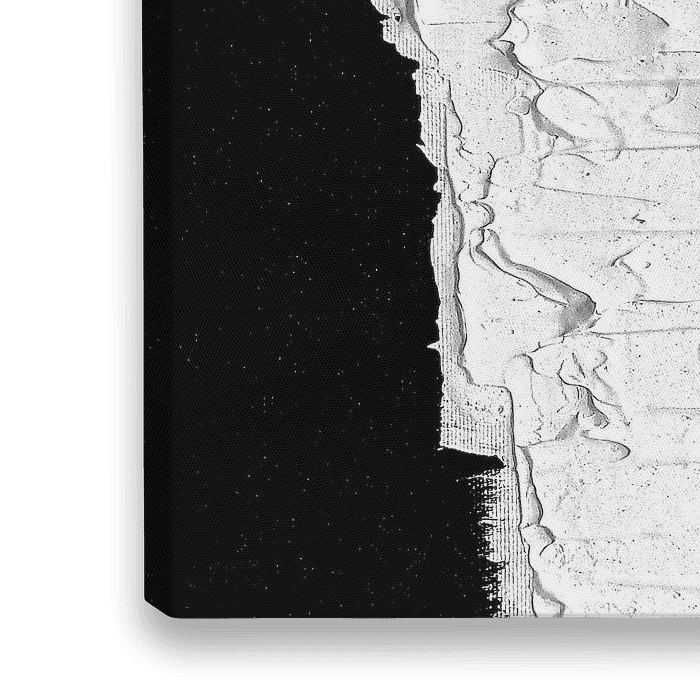 Acryl abstract schilderij, handgeschilderd, op canvas. Een zwart wit stuk, wat opgebouwd is met verschillende lagen wit.