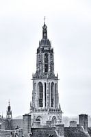 De Rhenense Cuneratoren. Ver vanuit wijde omgeving al te zien! De witte lucht en de zwart-grijze toren steken lekker op elkaar af. Een mooie contrastrijke foto die zeker niet zal misstaan op aluminium of een canvas met zwarte baklijst.