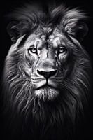 Creëer een unieke sfeer met deze intense, epressionistische foto van een leeuw. De krachtige uitstraling en het moderne zwart-wit kleurenpalet maken dit kunstwerk tot een echte blikvanger in uw interieur.