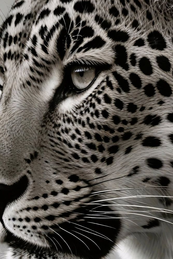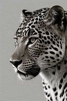 Deze krachtige zwart-witte afbeelding vangt de intense blik van een luipaard. Met ogen die diepte en wijsheid verraden, toont het ontwerp de delicate balans tussen schoonheid en kracht die dit majestueuze dier belichaamt. De minimaal gebruikte kleuren versterken het visuele effect en leggen de focus op de vloeiende lijnen en unieke vachtpatronen, waardoor dit kunstwerk een statement maakt in elke moderne ruimte.
