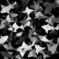 Of het nu in een woonkamer, kantoor of slaapkamer is, deze zwart-witte vissen kunst creëert een stijlvolle, tijdloze sfeer die zowel de ogen als de geest verwent. Het is een kunstwerk dat de schoonheid van eenvoud viert, met een subtiele maar krachtige boodschap die uitnodigt tot reflectie en bewondering.