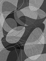 Zwart en witte organische vormen. Moderne abstracte retro geometrie. Mixed media moderne abstracte kunst. Eenvoudige organische vormen en lijnen in warme aardkleuren. Textuur voor een zachte retro look. Vintage geïnspireerde geometrische kunst.