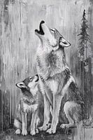 Dit prachtige schilderij toont een tedere interactie tussen een moederwolf en haar pup. De monochrome tinten brengen een gevoel van rust en elegantie in het ontwerp, terwijl het zachte contrast de details van de wolven benadrukt. Perfect voor liefhebbers van dieren en natuur, dit ontwerp is een indrukwekkende toevoeging aan een modern interieur, of het nu in een slaapkamer, woonkamer of kantoor hangt. Het straalt een gevoel van verbondenheid en sereniteit uit dat iedere ruimte tot leven brengt.