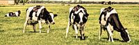 Nederlandse Zwartbont koeien in het weiland. Genieten van het verse gras. Vrede op aarde. Een Fries-Hollands rund. Typisch gezicht in Nederland.