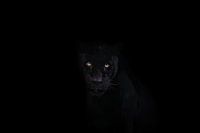 Zwarte Jaguar met een zwarte achtergrond starend naar jou