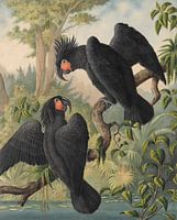 Zwarte kaketoes in oerwoudlandschap
