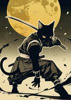 Zwarte Kat Samoerai onder Maan