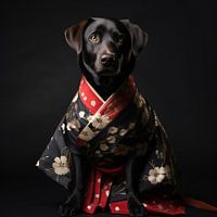 Ontdek de harmonie tussen traditie en de tederheid van een zwarte Labrador Retriever, gehuld in prachtige traditionele oosterse kleding. Dit kunstwerk vangt de unieke mix van culturele rijkdom en dierenliefde op een meesterlijke manier. Een eerbetoon aan zowel trouwe viervoeters als eeuwenoude tradities.