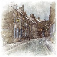 Zwarte Nonnenstraat in Veurne. Veurne, Belgische stad in West Vlaanderen. De foto is bewerkt tot een aquarel schets. Bestemd voor het boek De Kerst Slaper. Een Veurnse legende was de inspiratie voor dit Kerstverhaal.